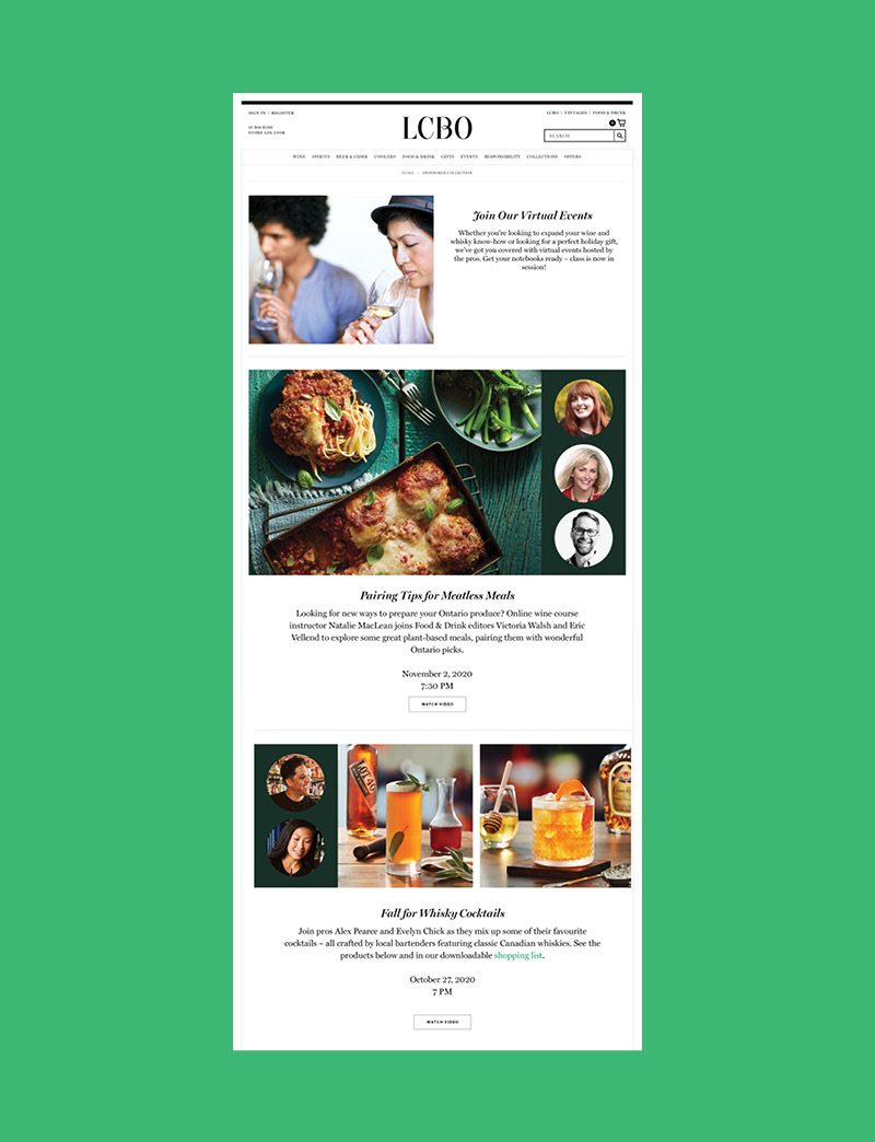- Dedicated social post driving to Virtual Events Page; streaming of event on LCBO social platforms or another streaming platform